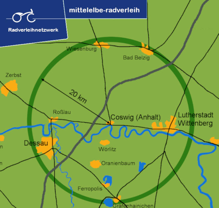 ist die perfekte Lösung für Kurzentschlossene. An verschiedenen Anlaufstellen in der Region stehen unsere Räder bereit und können zu den Öffnungszeiten des jeweiligen Partners ausgeliehen werden.Zusätzlich besteht die Möglichkeit, die Räder an einer anderen Station wieder zurückzugeben. Sie können also zum Beispiel von Bad Belzig nach Dessau oder von Wörlitz nach Wittenberg Radeln und zurück bequem per ÖPNV reisen, ohne das Rad mit zurücknehmen zu müssen.