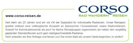 Seit einigen Jahren sind unsere Räder nicht nur für uns deutschlandweit unterwegs, sondern im Namen von verschiedenen (Rad)-Reiseunternehmen auch für deren zufriedene Kunden. Dabei sind wir ein zuverlässiger Partner von der Buchung über die Betreuung der Gäste bis zur genauen Abrechnung der erbrachten Leistungen.Testen Sie uns, wir sind gerne im Auftrag Ihrer Kunden unterwegs.